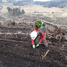 伐採した場所に新しい苗木を一本ずつ植えていきます。